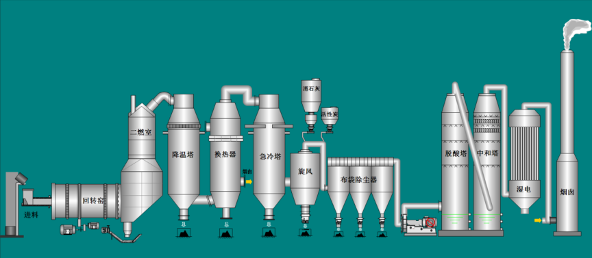 針對(duì)焚燒類危險(xiǎn)廢物,采用“回轉(zhuǎn)窯焚燒爐+尾氣處理系統(tǒng)”的工藝方案。具體焚燒處置工藝如下: